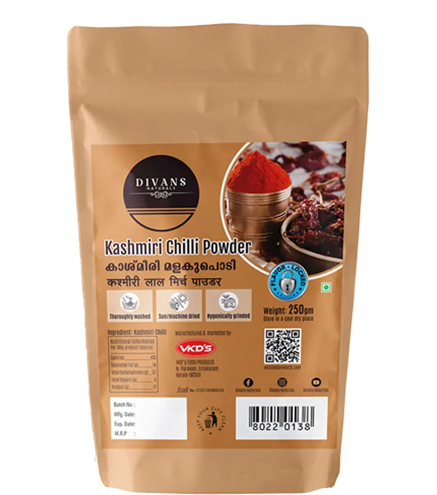 Looking for vibrant red color in your dishes with only mild heat? Divans Kashmiri Chilli Powder is the perfect choice. Ideal for everyday cooking—be it curries, gravies, or fries—this chilli powder adds a rich natural color without overpowering heat.